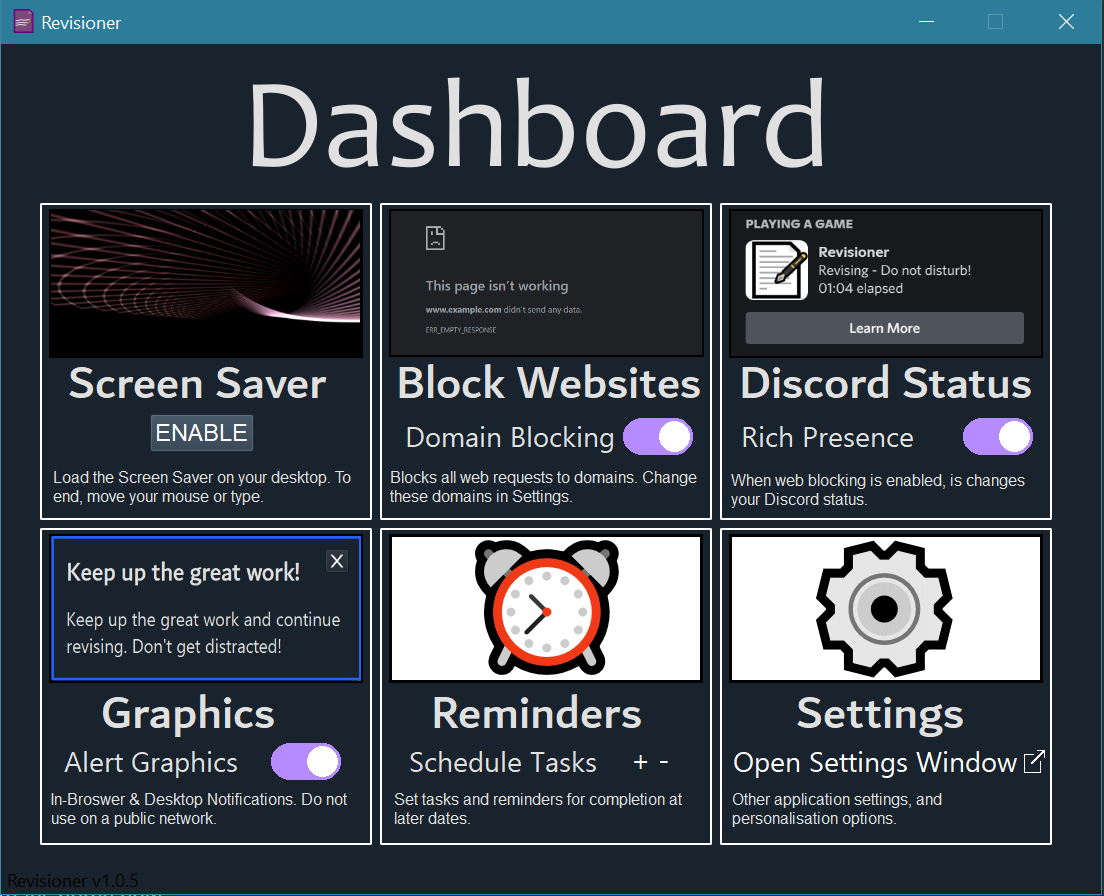 Revisioner is an app under development designed to aid revision by blocking potential distractions and distractive material.