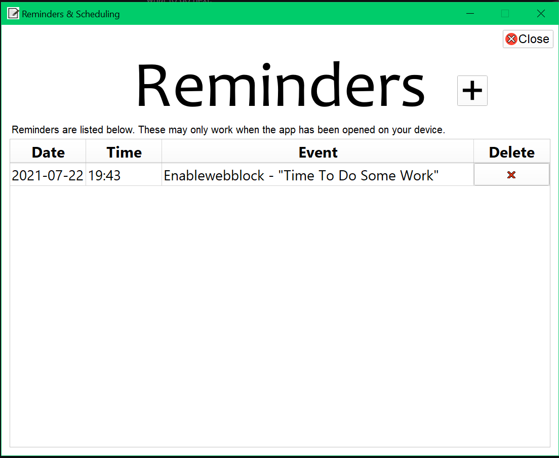- Fixed reminders fail if reminder window is closed using windows native button (removed native button)